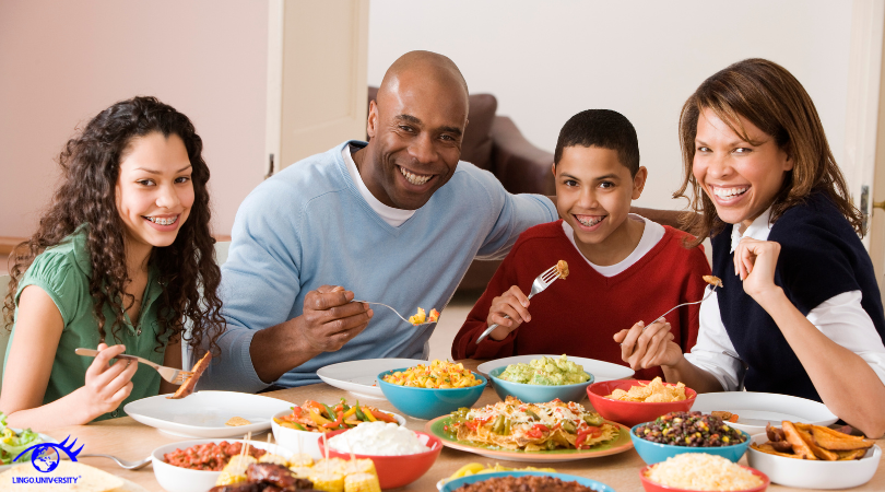 Ahora todos comiendo juntos en casa.